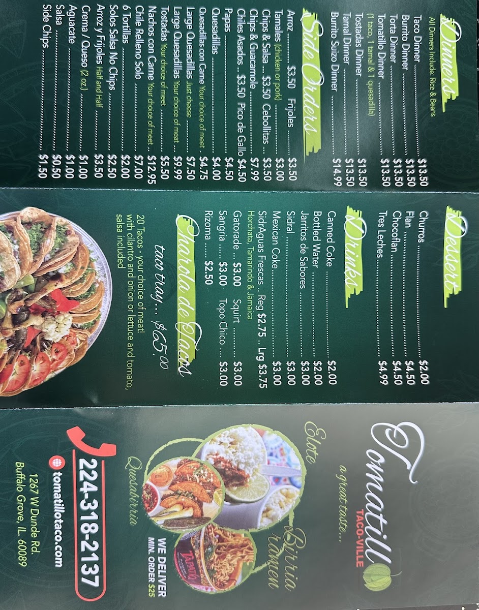 Welcome to Tomatillo Taco Ville, a delightful gem nestled in Buffalo Grove, IL. Known for its vibrant atmosphere and passionate chef, this eatery excels in crafting authentic Mexican dishes that leave a lasting impression. The menu presents an array of mouthwatering burritos, including the Asada Burrito and Lomo De Res Burrito, both generously filled with high-quality ingredients such as grilled carne asada and rib-eye steak, paired beautifully with fresh toppings.